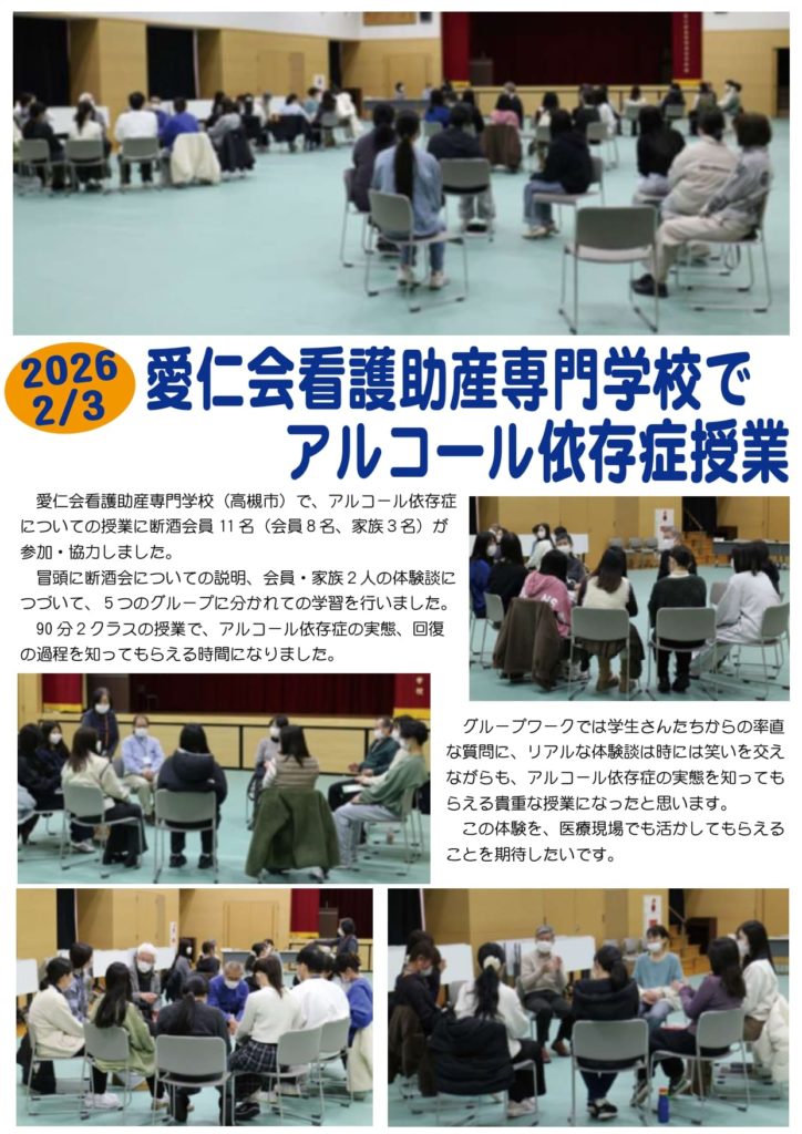| ●愛仁会看護助産専門学校でアルコール依存症の授業に参加・協力しました。(2026.2.13) |