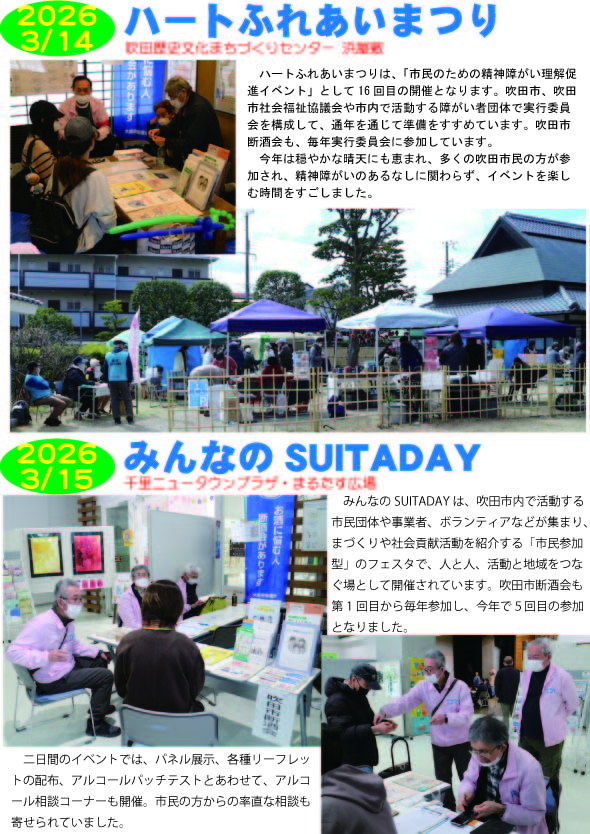 | ●吹田市断酒会はハートふれあいまつり、みんなのSUITADAYに参加しました。(2026.3.31) |